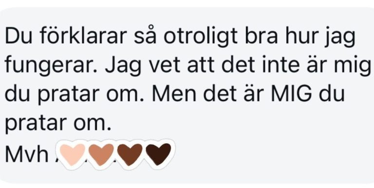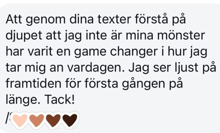 Att spegla det du inte själv ser - många beskriver att texterna känns som om de var skrivna direkt till dem. Det ger en känsla av lättnad och igenkänning: “äntligen någon som sätter ord på det jag burit.” För du är inte ensam.